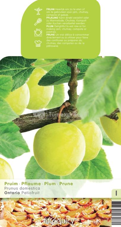 De Ontario is een rijk dragende pruimenboom die heerlijke sappige, zoete vruchten oplevert. Hierdoor is het een zeer geschikte pruimenboom voor de beginnende tuinierder. De pruimen zijn rijp in juli en zowel vers te eten als wel te verwerken in jam, compote of gebak. Deze pruimenboom is zelfbestuivend.