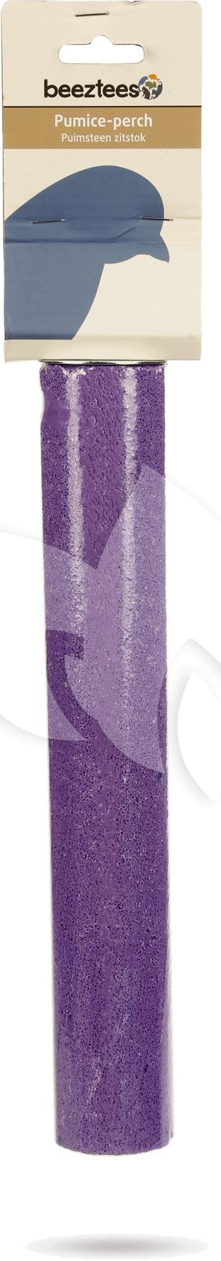 Een puimsteen zitstok zorgt ervoor dat de snavel en nagels op een natuurlijke manier worden afgesleten. Gemaakt van natuurlijk lavasteen. Voorzien van een metalen plaatje met vleugelmoer om makkelijk vast te zetten.Lengte: 33 cm. Kleur: paars.
