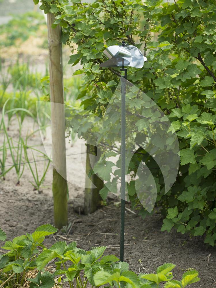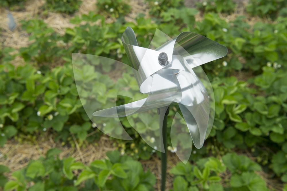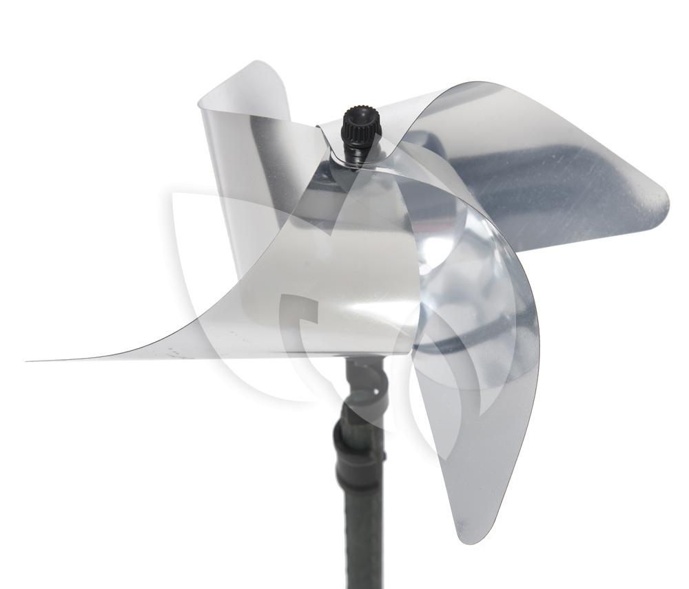 Deze zilverkleurige reflecterende windmolen zet u in een handomdraai in elkaar. De molen wordt geleverd met koppelstukje waardoor u de windmolen op een 18mm plantenstok kunt zetten. De windmolen is een uiterst effectieve vogelverjager. Door de beweging en weerkaatsing van het licht zullen zij wegblijven van uw geliefde gewassen. Deze vogelverjager is tevens zeer goed bruikbaar voor het verjagen van reigers bij uw vijver.