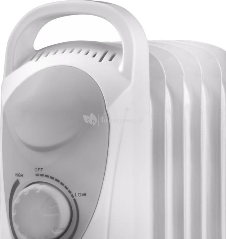 De RK500 radiator heeft een vermogen van 500W en is voorzien van een thermostaat. De thermostaat kunt u traploos instellen en door regelmatig in- en uit te schakelen zal de thermostaat de gewenste temperatuur blijven handhaven. De radiator is voorzien van vijf vinnen en doormiddel van de handgreep en het lichte gewicht eenvoudig te verplaatsen. Dankzij de oververhittingsbeveiliging schakelt de elektrische radiator automatisch uit wanneer hij inwendig te heet wordt.
