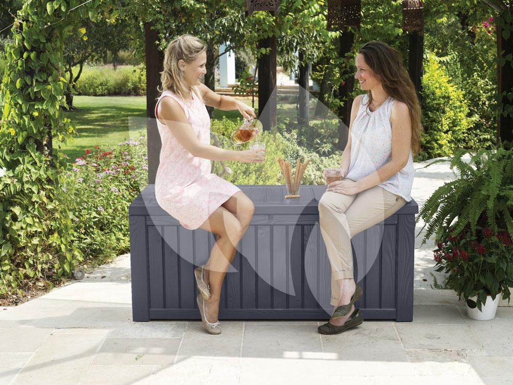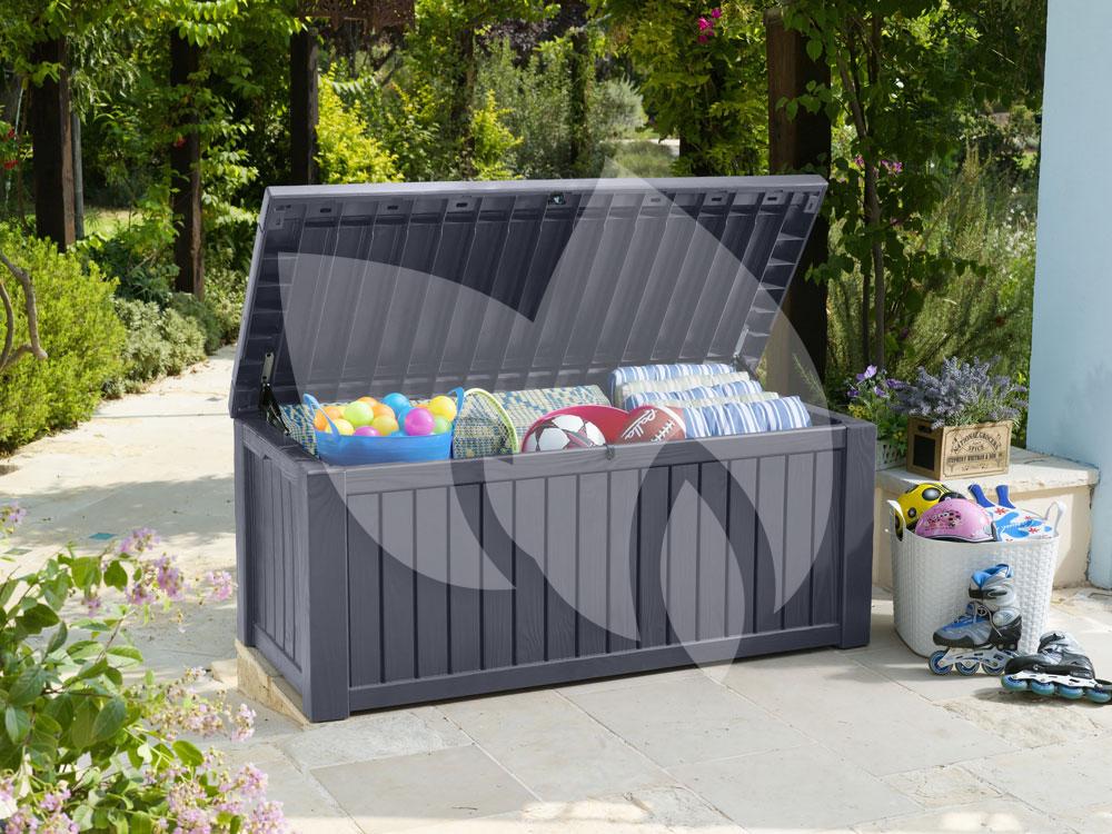 De Rockwood opbergbox donkergrijs is de ideale opbergbox voor in uw tuin. De opbergbox heeft een volume van 570 liter waardoor hij voldoende ruimte biedt aan verschillende tuinspullen. U kunt de opbergbox gebruiken om de kussens uit uw loungeset in op te bergen, of om het speelgoed van de kinderen in te bewaren. De opbergbox is eenvoudig te openen en te sluiten en dankzij de twee gasveren opent en sluit de deksel gedempt. Door de stevigheid van de opbergbox is hij ook ideaal om even op te gaan zitten, handig wanneer u zitplaatsen tekomt komt tijdens een borrel!