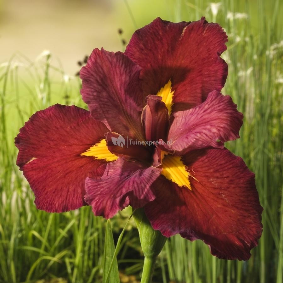 Robijnrood, goudkleurige details en fluweelzacht, zo zijn de bloemen van de rode water iris te beschrijven. In mei en juni bloeien deze prachtige, opvallende bloemen tussen het zwaardvormige groene blad. Deze waterplant kan een hoogte bereiken van 80cm. Behalve op de oever is deze plant ook in het water te planten. Voorkeur van de plant is een vochtige grond, zeker tijdens de bloeiperiode is dit een belangrijk gegeven zodat de bloemen in volle pracht kunnen bloeien. De plant laat zich prachtig combineren met vele andere tuinplanten, zeker wanneer u het zoekt in een kleurencombinatie van geel, oranje en rood. De combinatie mogelijkheden zijn hierin eindeloos!