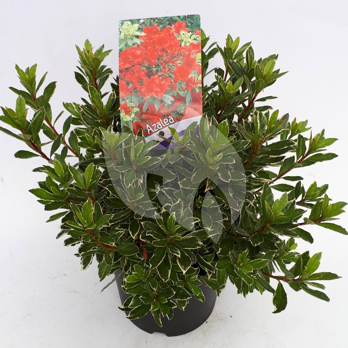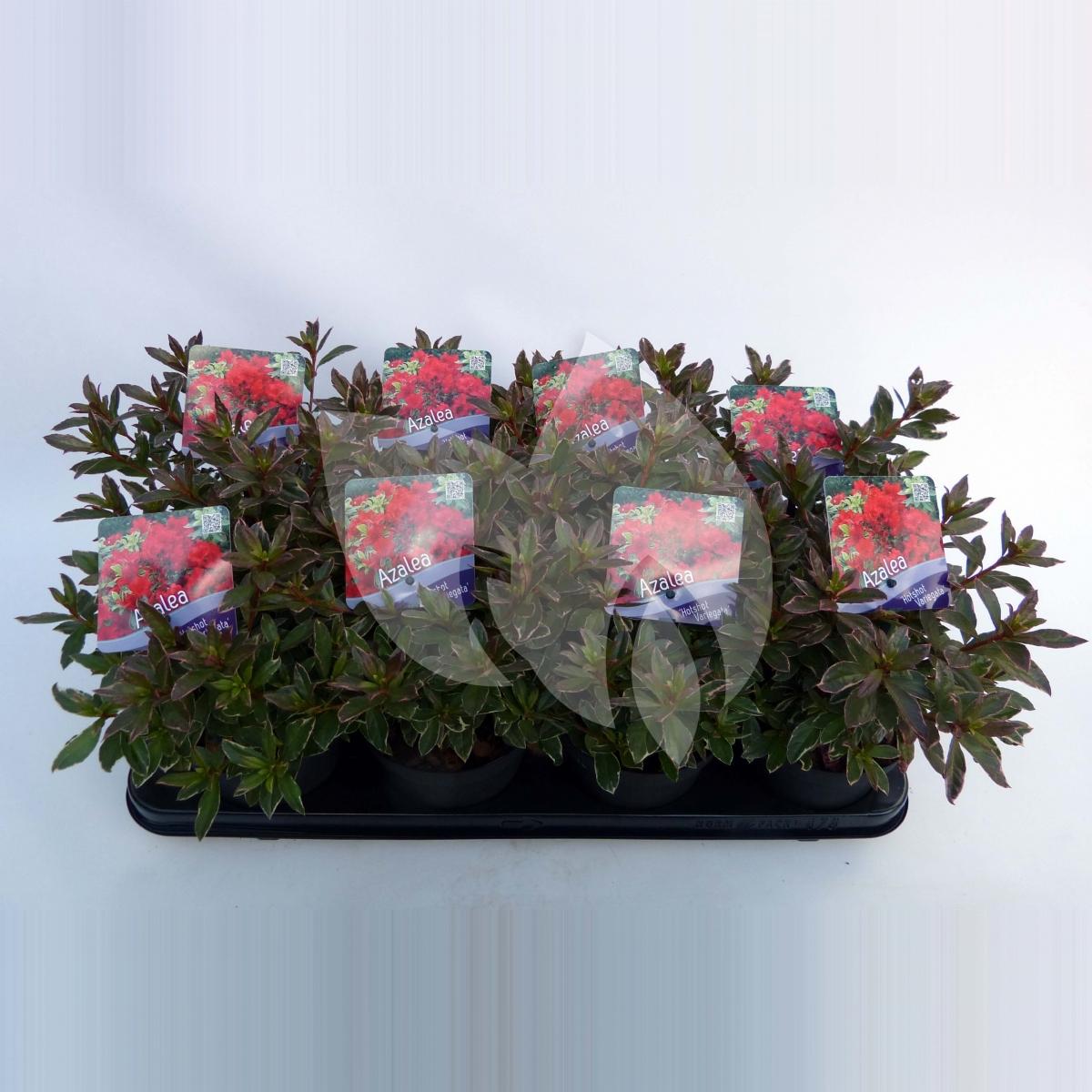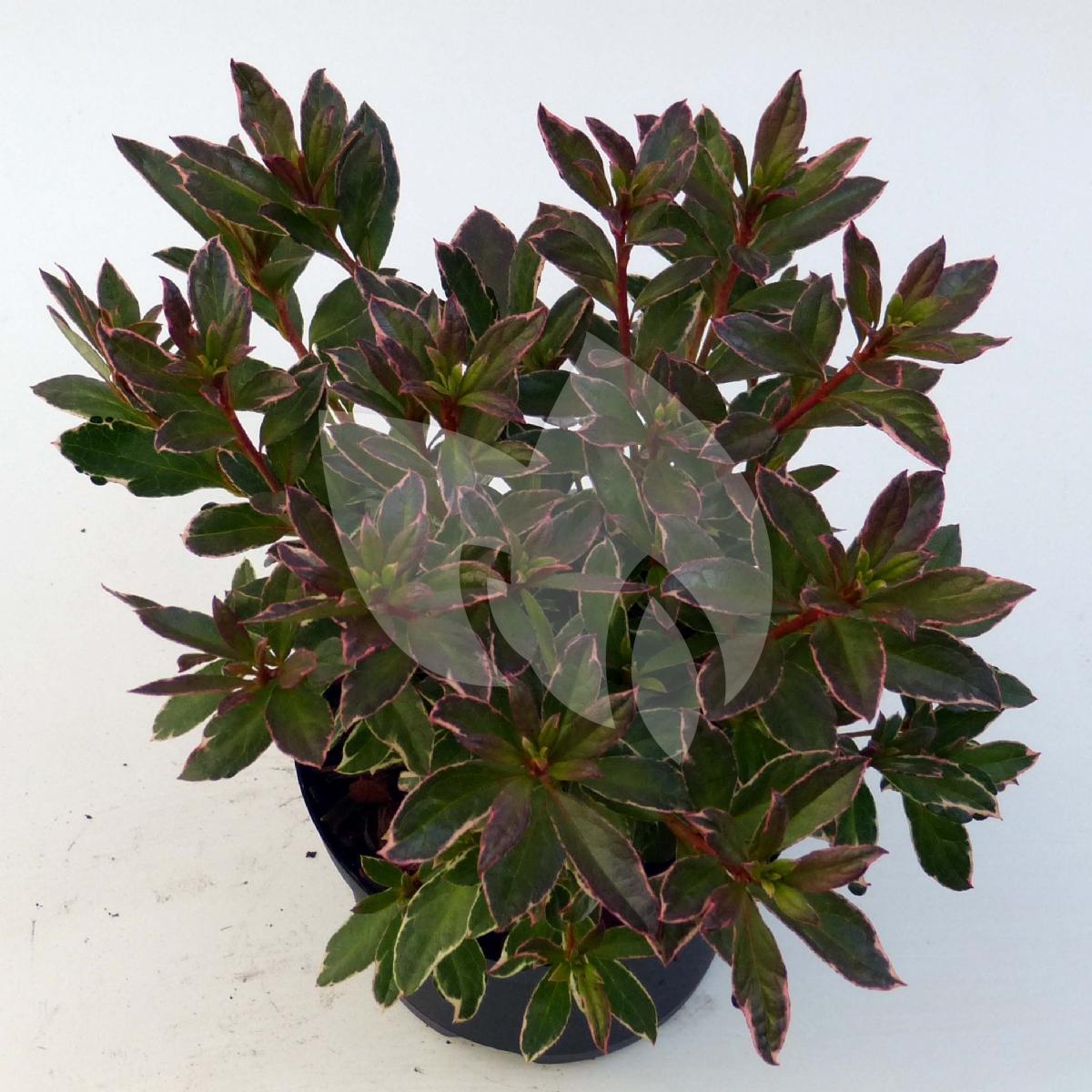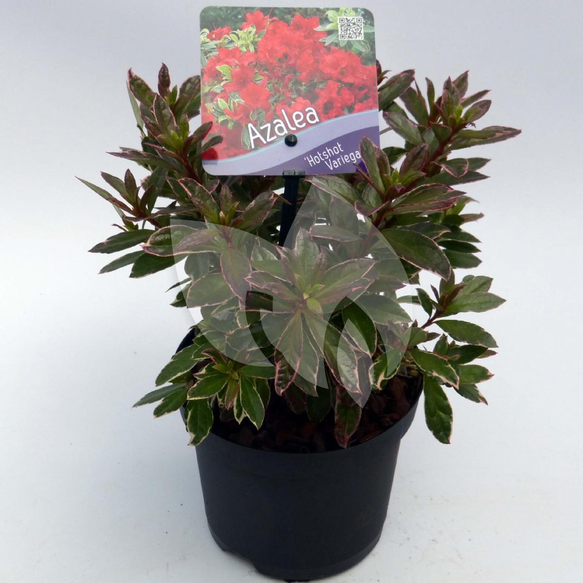 Rododendron (Rhododendron Japonica "Hotshot Variegata") heester