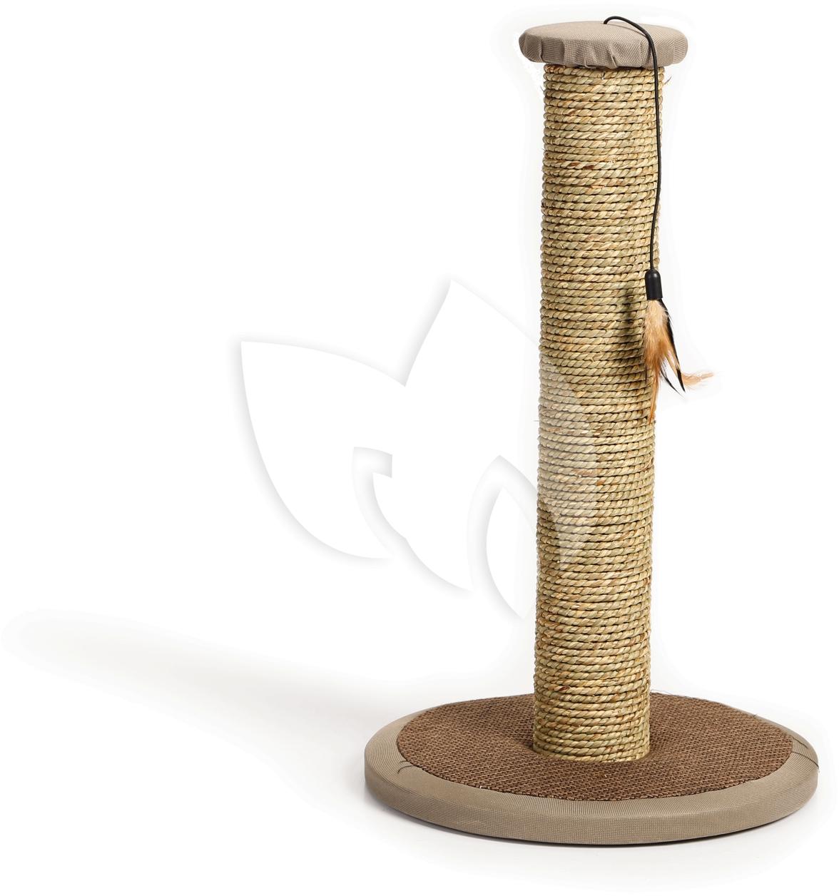 Een zeer fraai uitziende krabpaal, genaamd Rofra. Deze krabpaal heeft een solide ronde bodemplaat waarvan de oppervlakte bestaat uit stevige stof. De paal is vervaardigd van zeegras wat een natuurproduct is. Inclusief een veertje aan een elastiek voor extra speelplezier. Een aanwinst voor elk interieur.