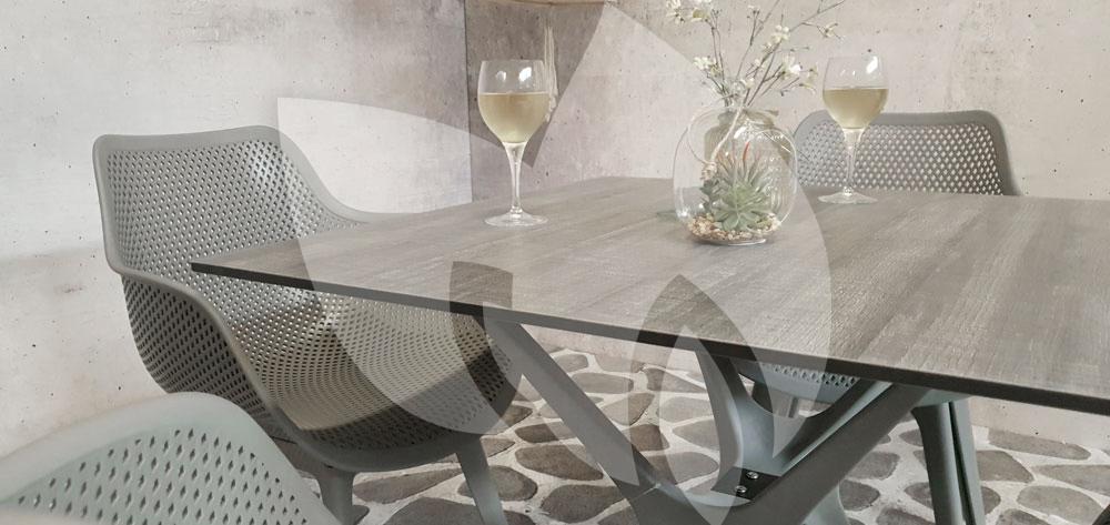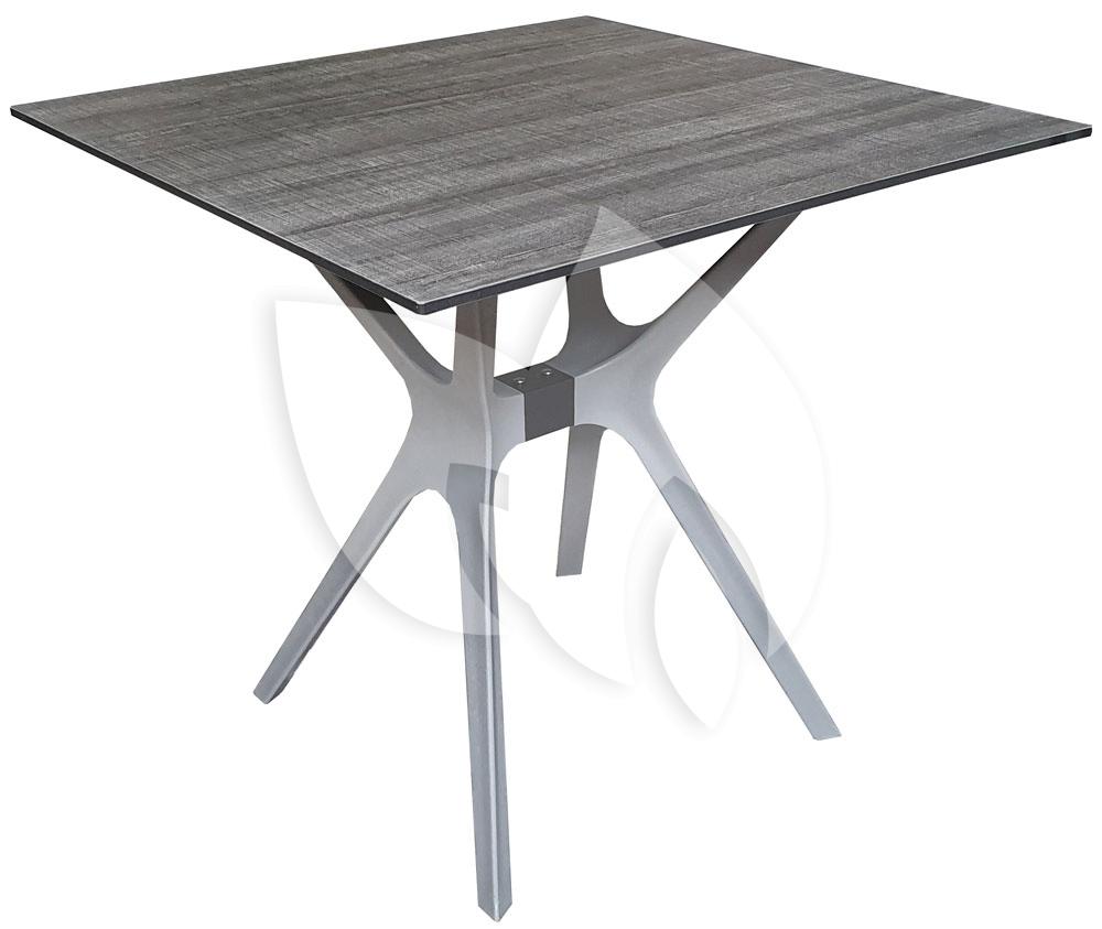 De vierkante tuintafel SenS-Line Jasper is lichtgewicht door de keuze van materialen. Het gelamineerde blad heeft een grijze houtprint en is weer- en UV besteding. Het polypropyleen onderstel is zeer sterk. De tafel is te combineren met tuinstoel Jasper.