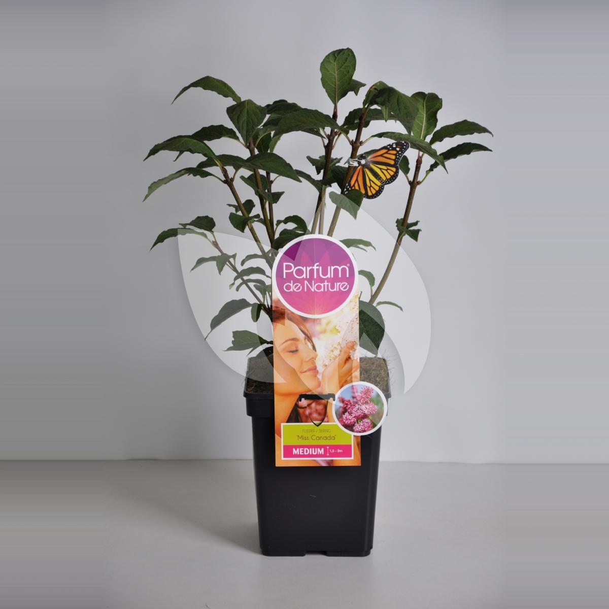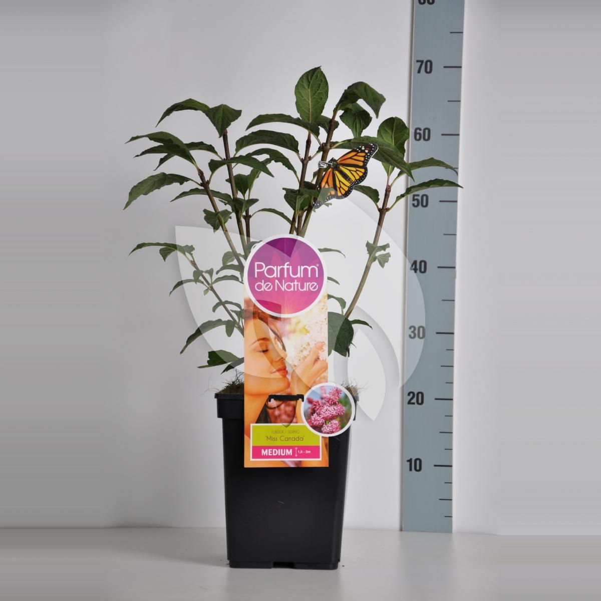 Miss Canada is tevens gekweekt behorende bij de Parfum de Nature selectie. Deze seringen zijn excellent qua geur en gekweekt op een stevige onderstam. De onderstam is vrijwel ongevoelig voor wildgroei van scheuten wat bij andere seringen nogal eens wil voorkomen. Daarnaast zorgen de, minimaal 2 jaar oude, sterke wortels voor een sterke, goed groeiende sering onder de juiste omstandigheden. De donkerroze, bijna rode bloemen geven een opvallend kleurtje aan uw tuin tijdens de bloeiperiode in mei/juni.