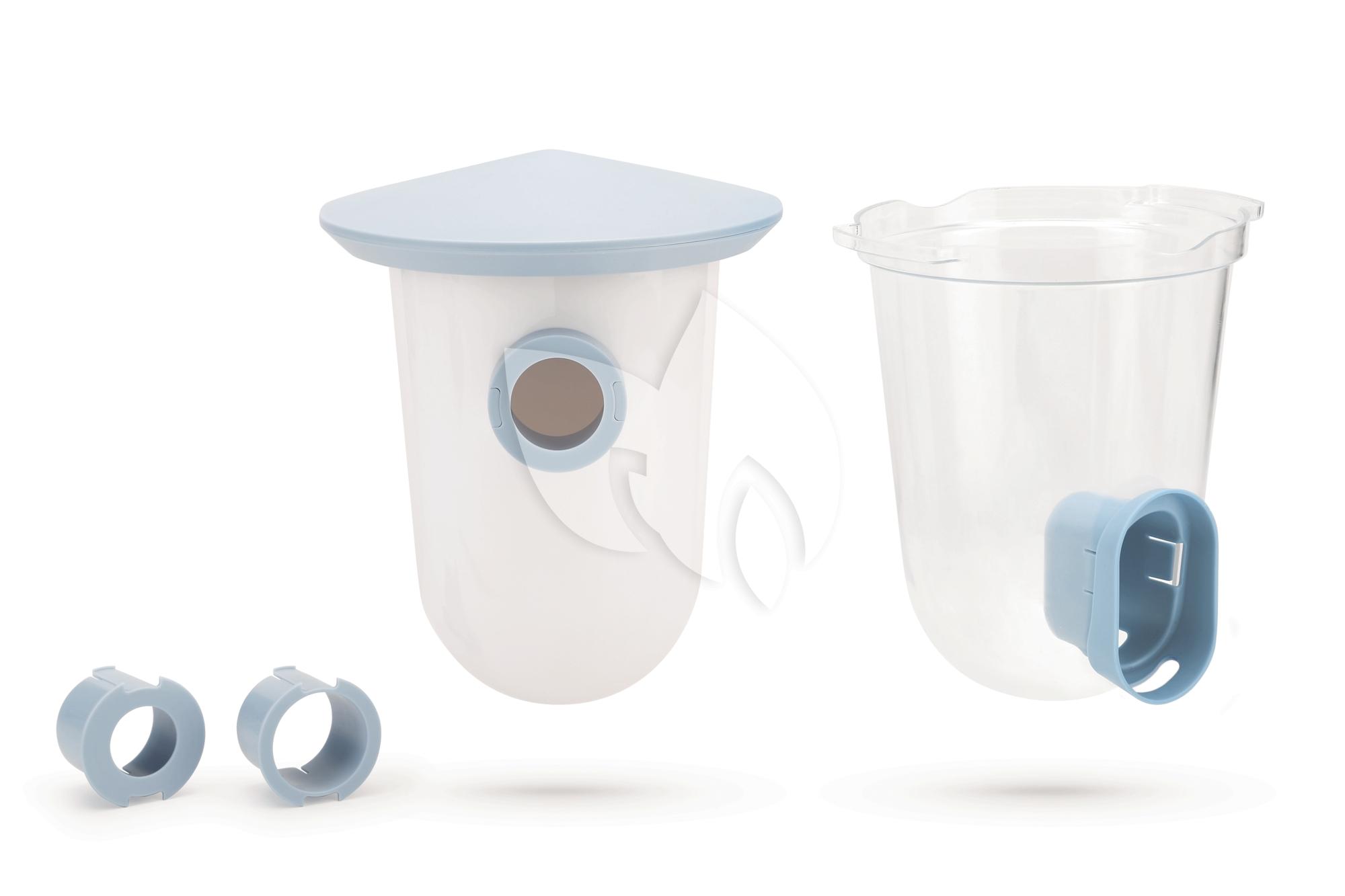 Een modieuze en eigentijdse set uit de Singing Friend collectie bestaande uit een voersilo en een broedhuisje. Zowel de voersilo als het broedhuisje kan op verschillende manieren bevestigt worden. Deze kunnen middels een schroef aan de muur bevestigt worden maar ook aan zowel horizontale als verticale oppervlaktes. Denk bij dit laatste aan een schutting of regenpijp dit doormiddel van het meegeleverde klittenband. Eens gemonteerd zijn beide ook weer heel makkelijk te demonteren. U draait de silo of het broedhuisje een slag en deze komt los van het dakje. Uiteraard ook weer makkelijk terug te hangen door deze tegen het dakje aan te houden en wederom een slag te draaien. Dakje en voeropening zijn beide waterdicht. Kleur: blauw. Meegeleverd: 1 dakje, 1 voersilo, 1 broedhuisje, klittenband en 3 ringen met verschillende diameters.