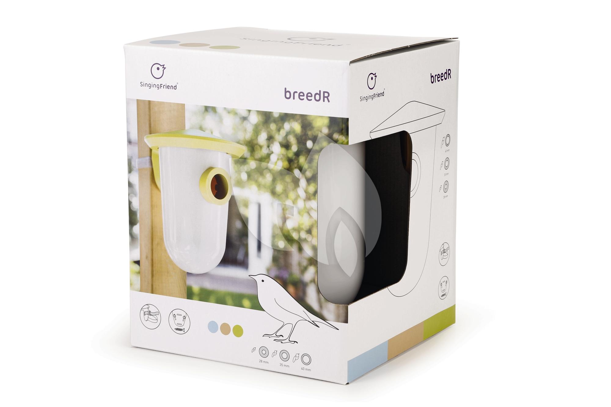 Een modieuze en eigentijdse broedhuisje voor onze kleine gevederde vriendjes. Dit broedhuisje uit de Singing Friend collectie kan op verschillende manieren bevestigt worden. Deze kan middels een schroef aan de muur bevestigt worden maar ook aan zowel horizontale als verticale oppervlaktes. Denk bij dit laatste aan een schutting of regenpijp doormiddel van het meegeleverde klittenband. Eens gemonteerd, is het broedhuisje heel makkelijk schoon te maken. U draait de silo een slag en deze komt los van het dakje. Uiteraard ook weer makkelijk terug te hangen door deze tegen het dakje aan te houden en wederom een slag te draaien. Dakje en voeropening zijn beide waterdicht. Kleur: blauw.