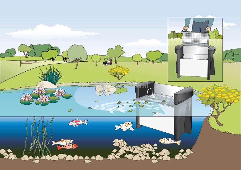 - Krachtig afzuigen van vijveroppervlakken tot 250 m2