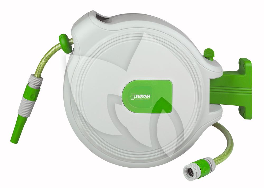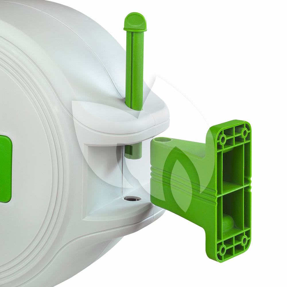 De slanghaspel SL20 Compact is gemaakt van hoogwaardige kwaliteit en uitgevoerd met een stop-waar-u-wilt-systeem. Dit systeem houdt in dat de slang simpel tot elke gewenste lengte kan worden afgerold en vergrendeld. De slang wordt na gebruik automatisch weer opgerold door middel van het automatic-return-systeem. De slanghaspel kunt u met de bijgeleverde montagesteun eenvoudig aan de muur bevestigen en kan ten opzichte van de muur 180° worden gedraaid. De slang in de haspel heeft een lengte van 20 meter.