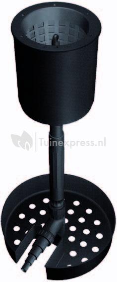 Kunststof sateliet skimmer voor het afzuigen van oppervlakte vuil in uw vijver. Groter vuil zoals bijvoorbeeld bladeren zal worden opgevangen in het filtermandje. Het mandje is eenvoudig uit de skimmer te pakken en schoon te maken. De voet van deze skimmer is eenvoudig te verzwaren met bijvoorbeeld stenen.