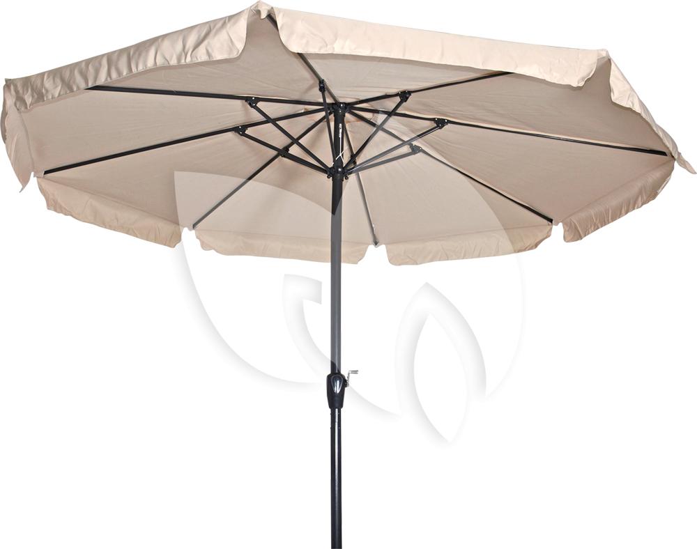 Met de stokparasol Libra 350 cm ecru kunt u ook op de warmste dagen in de tuin relaxen. De parasol zorgt niet alleen voor een koele schaduwplaats, maar beschermt ook tegen schadelijke UV-stralen. Het doek van de parasol is gemaakt van 250 grams polyester met 30+ UV bescherming. Onder deze parasol kunt u dus echt onbezorgd genieten. Het volan zorgt er tevens voor dat u geen last heeft van de laagstaande ochtend of avondzon. Door de diameter van 3,5 meter creëert de parasol een groot schaduwoppervlak waar u met meerdere personen onder kunt zitten.
