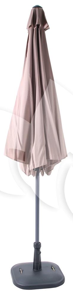 Taupe is een van de meest favoriete kleuren van het moment. Dat komt vooral omdat het een natuurlijke tint is die met werkelijk alle sets; kunststof of hout prima te combineren is. De parasol, met een doorsnede van 300 cm geeft een ruime schaduwplaats. Kiest u voor een parasolvoet die verrijdbaar is, dan kunt u de parasol ook eenvoudig naar de plek verplaatsen waar u de schaduw wenst.