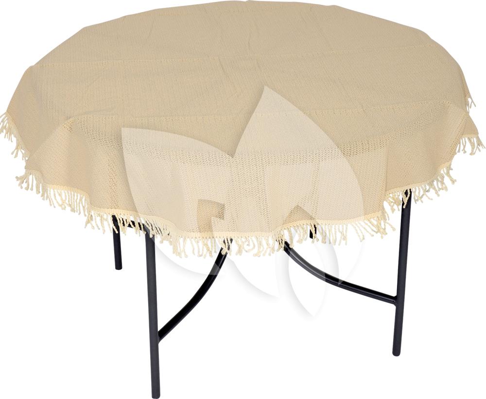 Uw nieuwe tuintafel wilt u uiteraard beschermen zodat hij langer mooi blijft. Dat kunt u doen met een tafelkleed. Dit ronde tafelkleed heeft een doorsnee van Ø160cm. Het tafelkleed is beige van kleur en is afgewerkt met zwarte franjes. Om het tafelkleed mooi te houden is het belangrijk het tafelkleed na gebruik op te bergen.