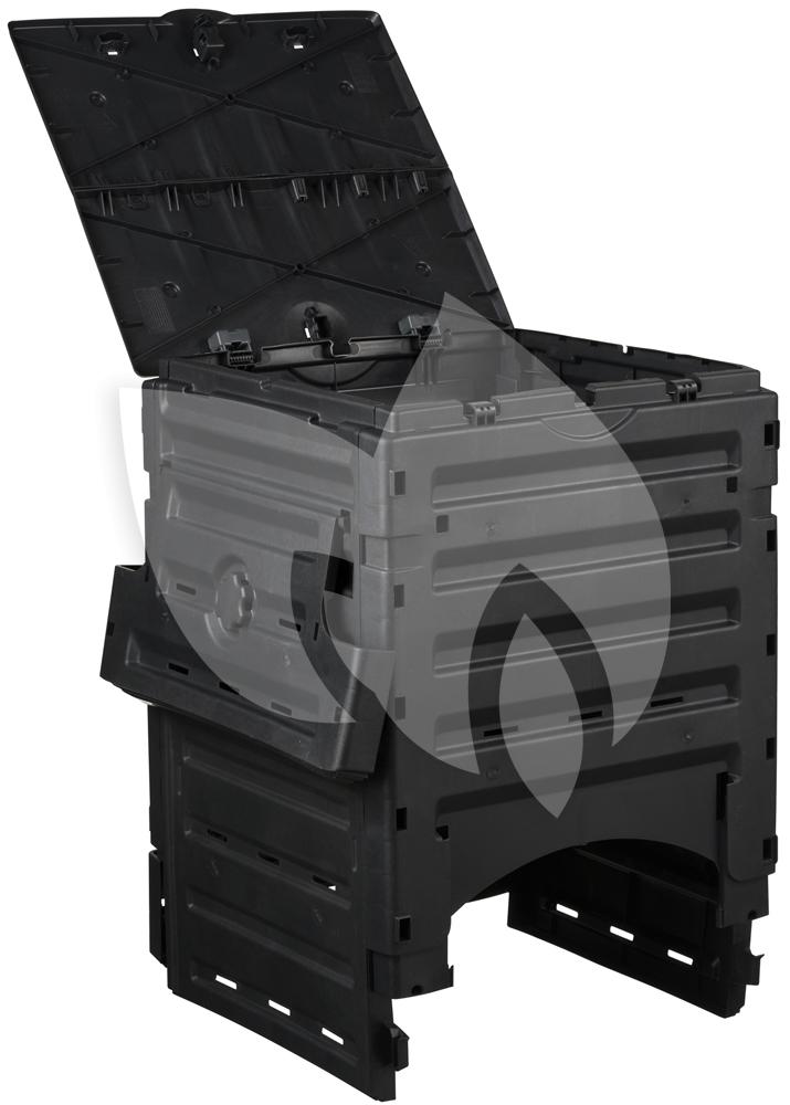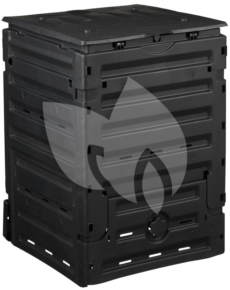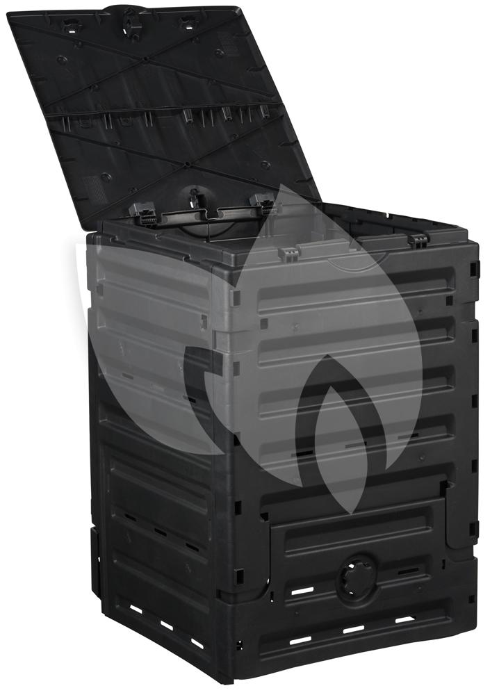 Deze thermo compostbak is volledig inklapbaar. De opening aan de bovenzijde gebruikt u om nieuwe afval toe te voegen. De opening aan de onderzijde gebruikt u voor het omscheppen van het compost of voor het verwijderen van compost dat inmiddels bruikbaar is in de tuin. De compostbak is gemaakt van polypropyleen waarvan de wanden voorzien zijn van Thermolen, deze toevoeging zorgt voor een constante hoge temperatuur wat bijdraagt aan de snelheid van het composteren.