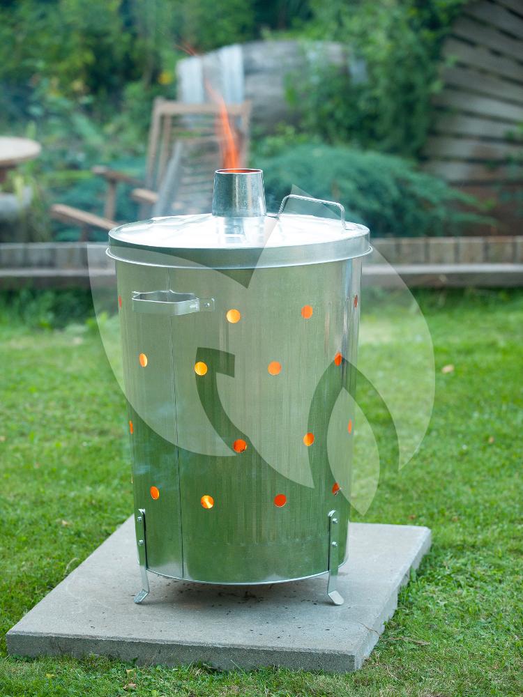 Deze traditionele verbrandingsoven van verzinkt staal is voorzien van een deksel met schacht en handvat. Met deze verbrandingsoven kunt u zeer gemakkelijk uw tuinafval verbanden. De ventilatieopeningen zorgen voor een perfecte verbranding. De verbrander heeft maar liefst een capaciteit van 100 liter. Met zijn stoere design is deze verbrandingsoven uw ideale tuinaccessoire om afval uit uw tuin te verbranden. De verbrandingsoven is geschikt voor zowel droge als natte planten. De stabiliteit word gegarandeerd door de 3 geklonken voetjes aan de onderkant van de verbrander.