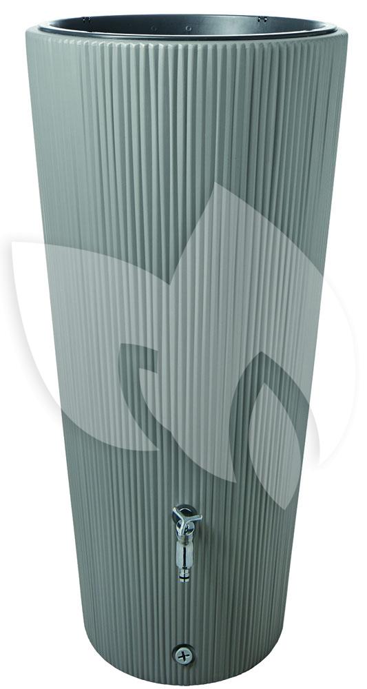 Deze 2-in-1 regenton is gemaakt van een degelijk, stevig kunststof in een beton kleur. Het reliëf in de regenton geeft deze design waterton een speels uiterlijk. Het taps toelopende design kan maar liefst 220 liter water opslaan. De regenton heeft op zijn grootste punt een diameter van 58cm. De regenton vangt het regenwater zowel via de regenpijp als via de bloempot op. De geïntegreerde plantenbak heeft een filtervlies dat ervoor zorgt dat de potgrond in de bloempot blijft en het regenwater gefilterd de regenton bereikt. De regenton is voorzien van een luxe chromen kraan waar tevens een tuinslang aan te bevestigen is. Daarnaast is de regenton voorzien van een laagliggende opening om de ton te legen voor de vorstperiode aanbreekt.