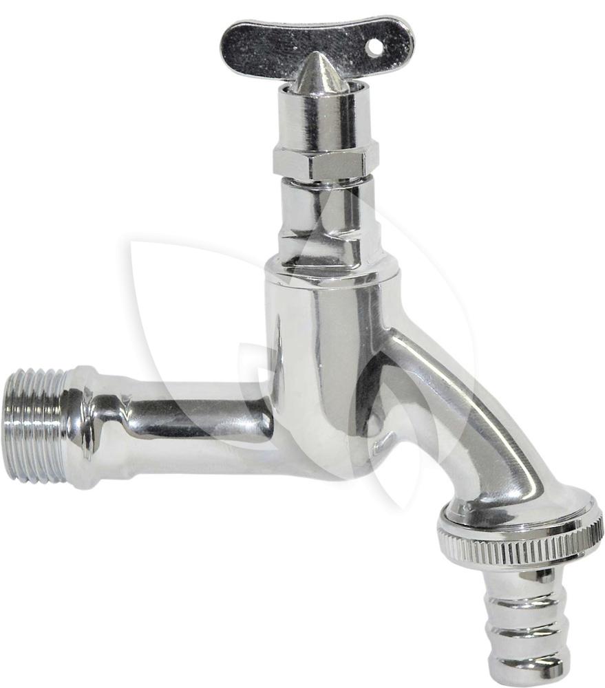 De chromen regentonkraan met sleutel is voorzien van een 1/2'' schroefdraad en heeft een 13 millimeter slangtule. De regenton kraan is voorzien van een afneembare sleutel. De regentonkraan is gemaakt van hoogwaardig chroom en is dus onderhoudsvrij. Maak uw regenton helemaal af met deze prachtige chromen regentonkraan met sleutel en maak op ieder gewenst moment gebruik van gratis hemelwater.