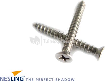 per 20 verpakte Nesling schroeven van roestvrij staal. Ideaal om bijvoorbeeld het plaat met oog te kunnen bevestigen.