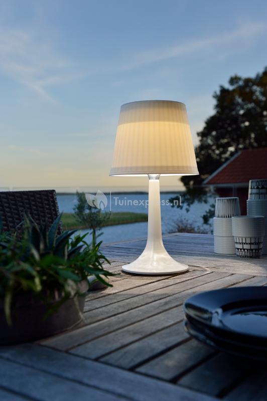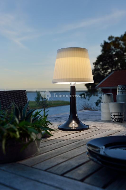 Solar tafellamp van het merk Konst Smide is niet alleen energiezuinig, maar het is ook een zeer sfeervolle solar tafellamp. Overdag zal de accu door de zon opgeladen worden, zodat u in de donkere uren kunt genieten van de zeer sfeervolle solar tafellamp met LED verlichting. Naast het energiezuinnige heeft de lamp ook het voordeel dat het geen aansluitsnoer heeft. Verkrijgbaar in vier trendy kleuren.