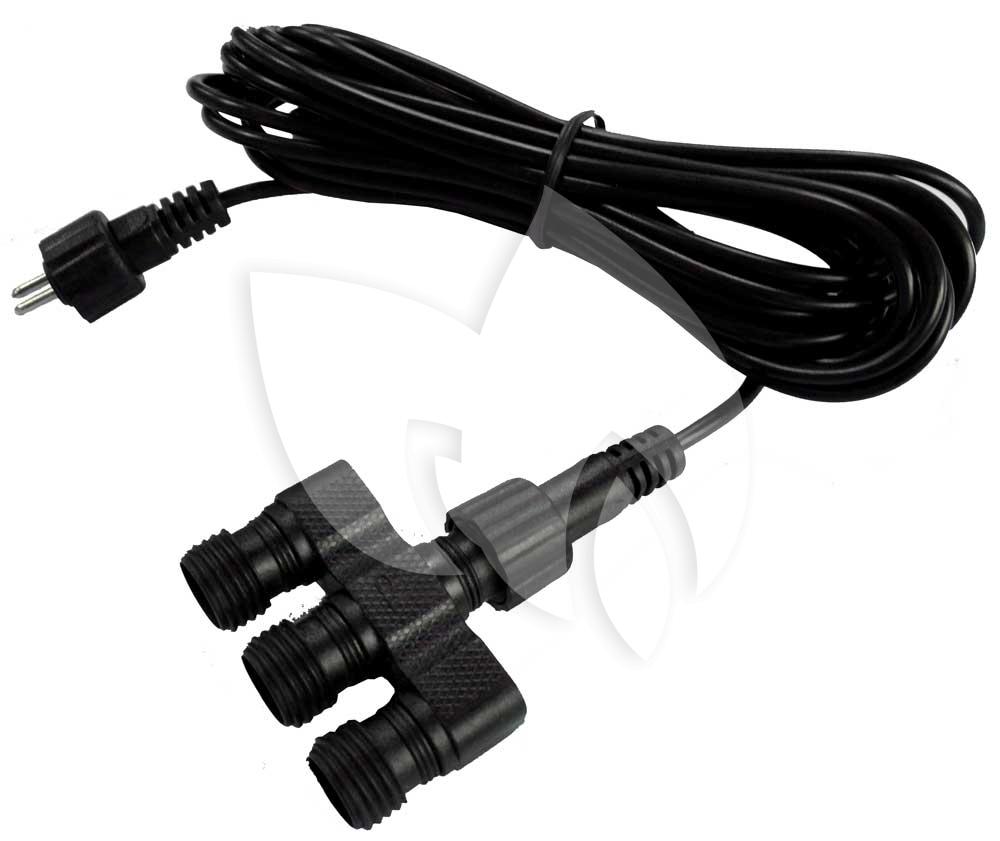 Deze waterdichte 3-weg verdeler voor 12 volt verlichtingsystemen heeft een aansluitsnoer van 5 meter. Deze aanluiting is ideaal te gebruiken bij waterornamenten. Sluit led of halogeen verlichting aan op deze 3-weg stroomverdeler.
