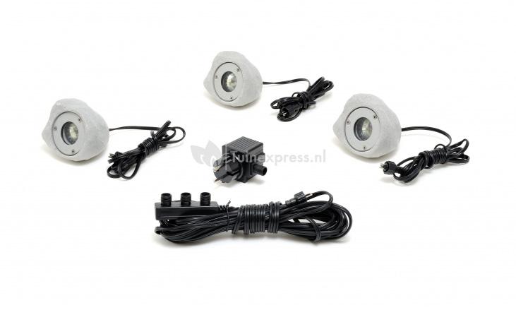 Fleur uw tuin op met de Amalfi spotlichten. Met het warm witte licht van de Amalfi set van 3 stenen kunt u uw tuin oplichten. Het Amalfi set is gemaakt van kunststof met een polystone afwerking, ze zijn 9 cm breed, 11cm lang en 9 cm hoog. Met de 8 meter lange verlengkabel die meegeleverd wordt en de 2 meter aansluitkabel dat aan iedere spot vastzit kunt u de Amalfi LED set verspreid in uw tuin plaatsen. Bij aankoop van de Amalfi LED set van 3 stenen worden de lichtbronnen en een transformator meegeleverd.