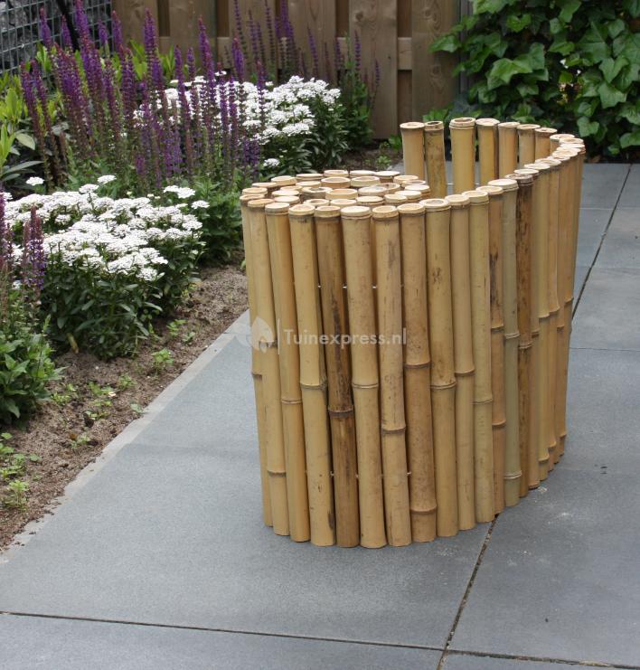 De bamboe border naturel is ideaal te gebruiken om hoogteverschil op te vangen in de tuin of als natuurlijke plantenbak. Het bamboe van de border is met gegalvaniseerd ijzerdraad aan elkaar bevestigd waardoor u het in iedere gewenste vorm kunt plaatsen. Het bamboe heeft een diameter van 38 tot 45 millimeter en is aan de bovenzijde gesloten zodat er geen water in blijft staan.