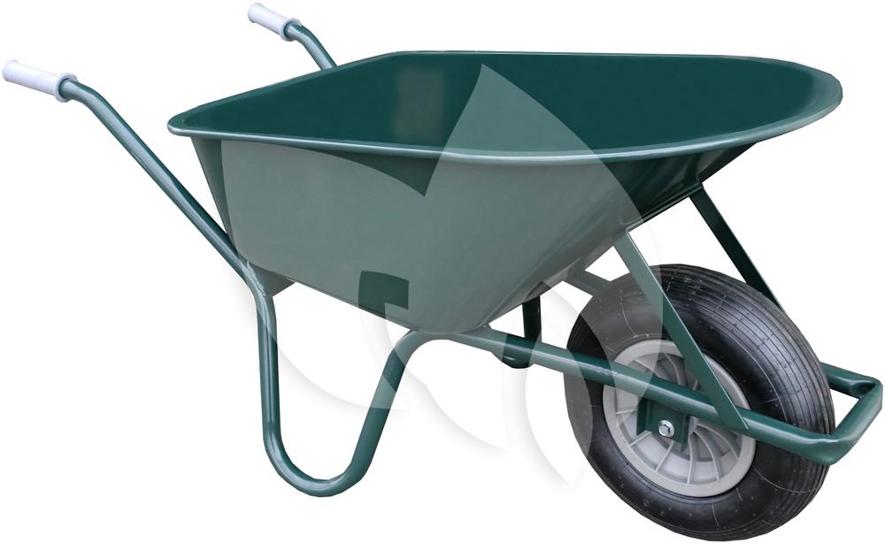 Dit type kruiwagen is een mooie basis bouwkruiwagen. De bak van de kruiwagen is afgewerkt met een ronde neus en is groen van kleur. Ook het frame is groen gekleurd. De hele kruiwagen is gemaakt van gecoat materiaal. De banden zitten om een kunststof velg.