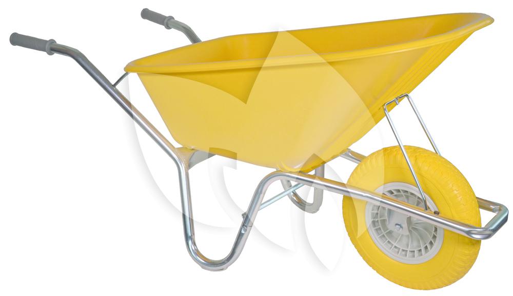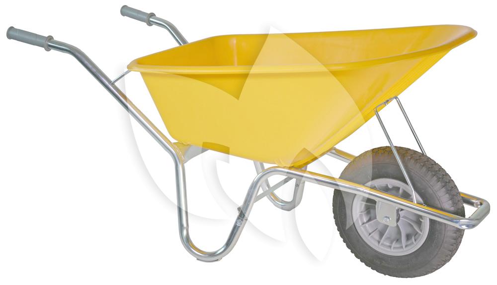 Deze opvallende gele kruiwagen is door de sterke kunststofbak met een inhoud van 100 liter, erg geschikt voor grote klussen. Het frame wordt gevormd door ronde buizen, gemaakt van metaal. Over deze buizen zit een laagje zink om het roesten tegen te gaan, en zo een langere levensduur te garanderen.