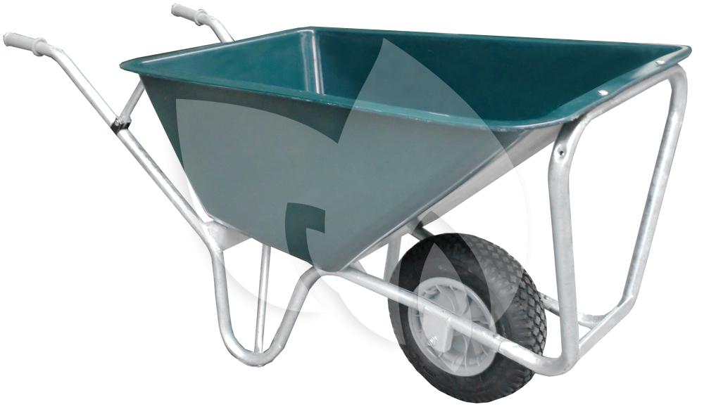 Deze mooie boerderij kruiwagen wordt veel gebruikt om de stallen uit te mesten. Door het hoge frame is de kruiwagen stabieler. Het frame is gemaakt van gegalvaniseerd metaal en bestaat uit twee delen. De bak, met een inhoud van 160 liter, is gemaakt van polyetheen, dit is een erg sterk kunststof. De band die wordt meegeleverd bij de kruiwagen, is een luchtband.