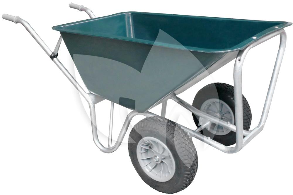 De naam zegt het al, dit type kruiwagen wordt veel gebruikt op de boerderij voor zowel de stallen als de landbouw. Dit model kruiwagen biedt extra stabiliteit door zijn twee wielen, wat erg handig is als u kijkt naar de inhoud van de kruiwagen. De polyetheen bak heeft maar liefst een vermogen van 160 liter. De twee wielen van de kruiwagen, bestaan uit luchtbanden. Het frame bestaat uit gegalvaniseerd metaal.