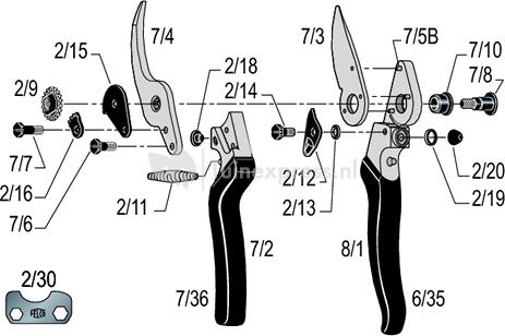 - Alle onderdelen van deze snoeischaar kunnen vervangen worden