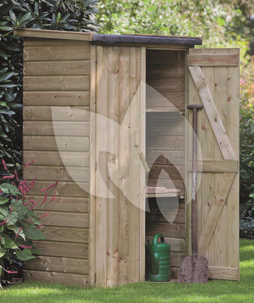 De Vaals houten tuinkast is zo ontworpen dat u zowel grote als kleine tuinattributen kan opbergen. Zo is één helft van de kast voorzien van draagplanken en in de andere helft is er ruimte voor langere voorwerpen zoals de bezem. De ideale kast dus om uw spullen in op te bergen.
