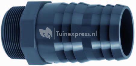 Hoogwaardige slangtule met buitendraad gemaakt van PVC. Voor het verbinden van bijvoorbeeld vijverslang met een draadkoppeling.