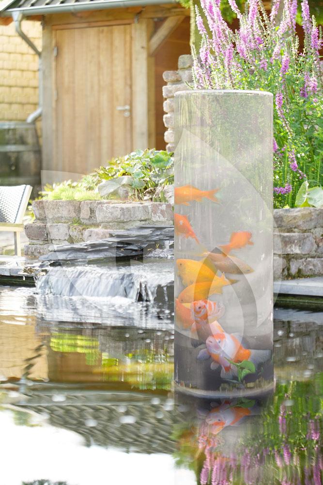 Zodra de eerste zonnestralen het water in de toren hebben opgewarmd, zullen de vissen de toren in zwemmen. Zo heeft u zeer goede observatie mogelijkheden en kunt u optimaal genieten van uw vissen en vijver!