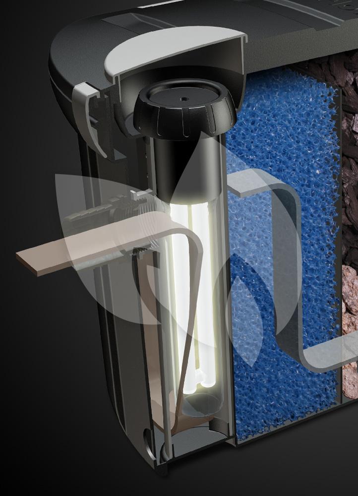 Het voordeel van deze UV-C unit is dat alle algen en ziektekiemen worden gedood voordat het water door de filtermaterialen wordt geleid. De UV-C filter is voorzien van speciale longlife lampen met een levensduur van ruim 7000 branduren. De UV-C unit is te gebruiken voor het Cross-Flow Biofill en de Clear Control drukfilters.