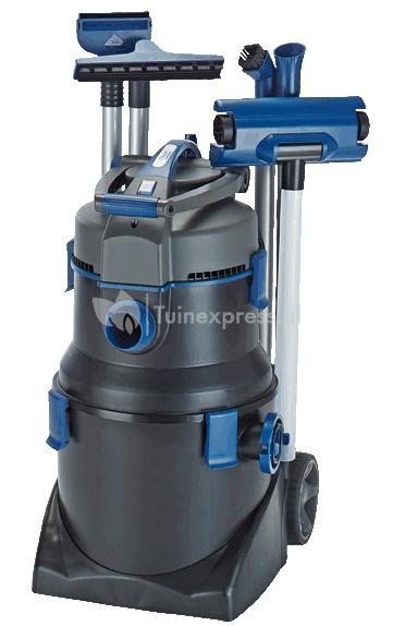 De PondoVac 5 is een op maat gemaakte vijver- en zwembadzuiger met geïntegreerde transportpomp. De zuiger is ideaal te gebruiken voor de reiniging van tuinvijvers, zwembaden en zwemvijvers en als natzuiger in het huishouden. Dankzij de aparte aanzuig- en pompfunctie vindt het legen van afvalwater uit de houder plaats via een geïntegreerde vuilpomp en kunt u zonder onderbreking door blijven zuigen. De PondoVac5 is voorzien van een krachtige motor die een maximale zuigdiepte van 2,5 meter aan kan en afhankelijk van de gebruiksomstandigheden een zuigcapaciteit heeft tot 8000 liter per uur. Dankzij een lange zuig- en afvoerslang beschikt u over veel bewegingsruimte en met de grote wielen aan de onderkant is vrijwel ieder terrein begaanbaar. Weet u niet waar u het vuile water moet laten? Laat het vuile water als ''organische mest'' in een bloemperk of in de riolering lopen. De grotere vuildeeltjes als stenen en bladeren worden in het voorfilterzak achtergehouden en kunt u makkelijk legen door middel van een ritssluiting. Voor het achterhouden van kleinere vuildeeltjes kunt u eventueel een vuilopvangzak vastbinden aan het einde van de afvoerslang.