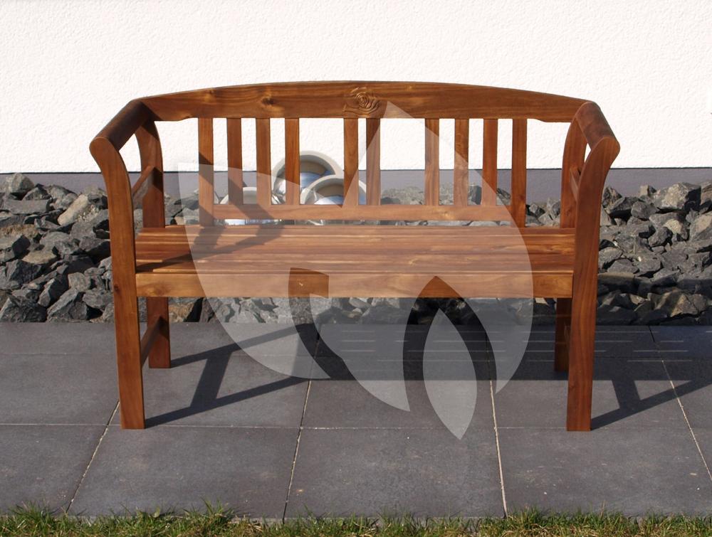 2-Persoons tuinbank Rosario siert in al zijn eenvoud. Het houten tuinbankje in een warme donkerbruine kleur heeft een decoratief snijwerk in de rugleuning. De ietwat rondlopende armleuningen zorgen voor een comfortabele zit.