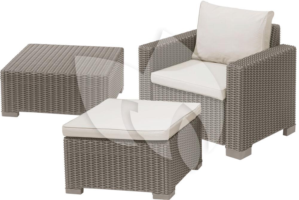 De Moorea loungestoel cappuccino bestaat uit een stoel, een hocker en een tafel. Het setje is gemaakt van het onderhoudsvrije wicker waardoor u slechts af en toe een doekje over het materiaal hoeft te halen waarna het weer als nieuw is! Het geweven kunststof heeft een modern uiterlijk maar ook in een klassieke tuin is dit setje een echte eyecatcher in uw tuin. Uiteraard horen hier ook de zandkleurige kussens bij om uw relaxmoment compleet te maken. De kussens zijn maar liefst 7,5cm dik voor een optimaal zitcomfort. Geniet van een goed boek of uw uitzicht met een drankje binnen handbereik vanuit deze heerlijke loungestoel!