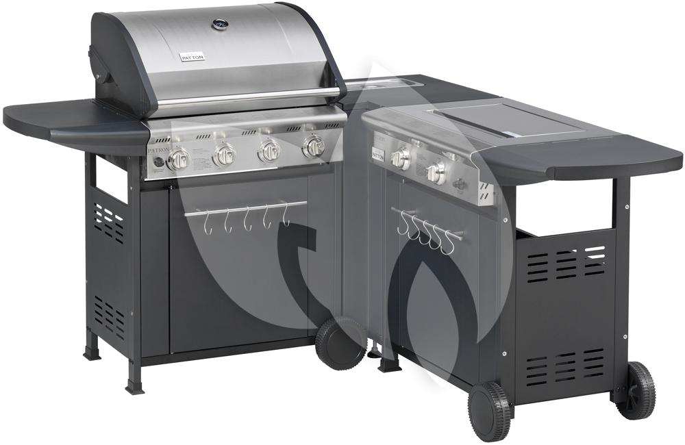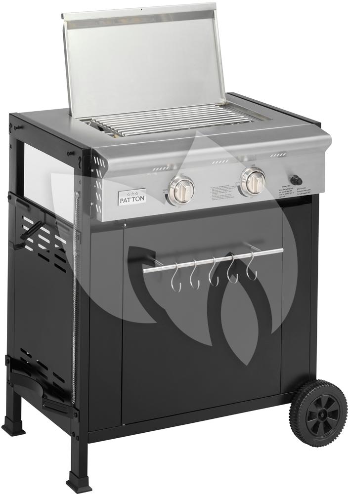 De patron cart two burner is een kookunit voor het verhitten van pannen of een wok, hij is voorzien van 2 krachtige branders (totaal 8.9 Kw) met windscherm, onderkast met deur en gereedschapsrek met 5 haken. Koppelbaar aan alle Patron barbecues.