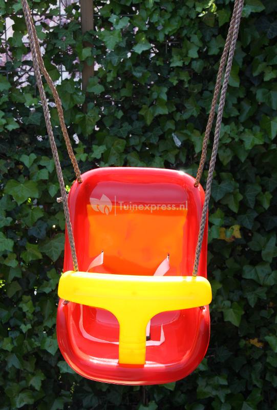 Ook voor de allerkleinste is er genoeg te doen in de tuin! Deze leuke rode schommel is geschikt voor baby's en peuters en biedt goede bescherming door de veiligheidsriem. De schommel is in hoogte verstelbaar en heeft een maximale touwlengte van 165 centimeter.