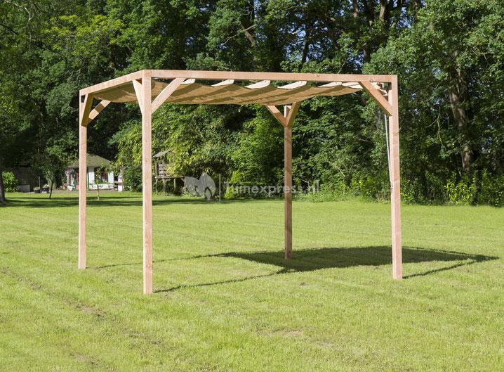 Vrijstaande pergola hout 3.7x3.7 meter met zand kleurig harmonicadoek