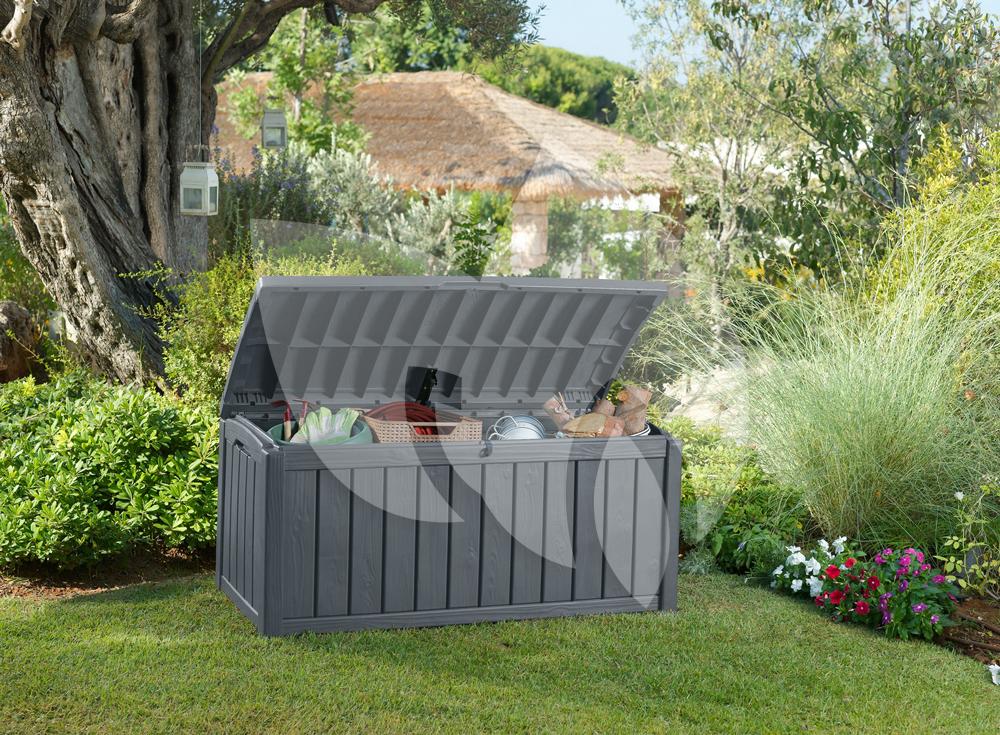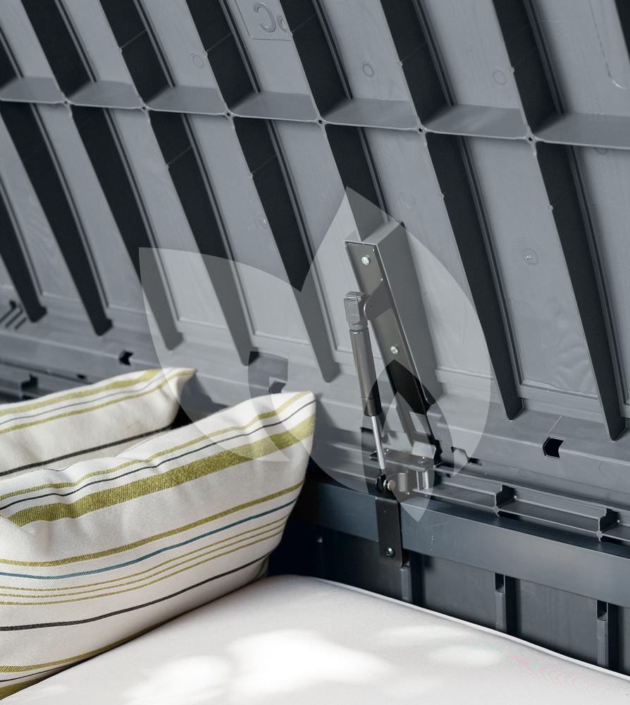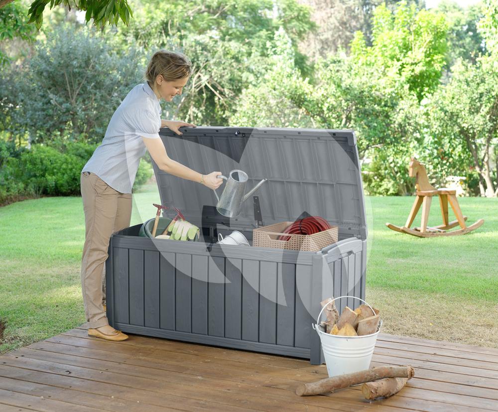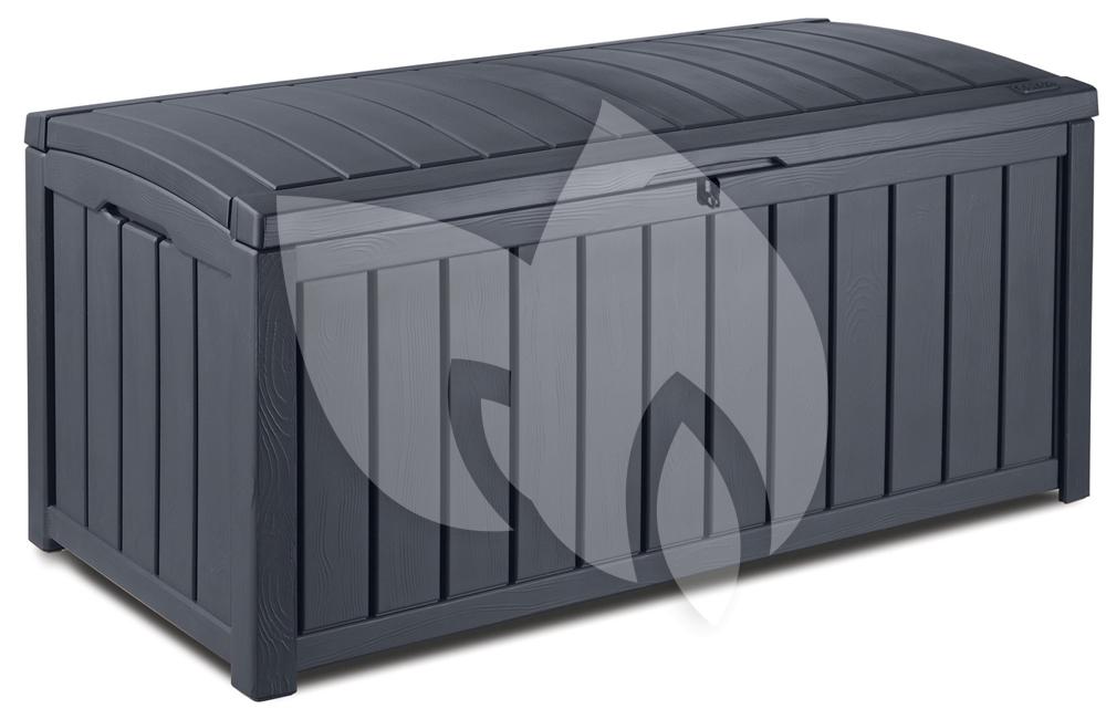 De Glenwood opbergbox is gemaakt van hoogwaardig kunststof met een stijlvolle houtenlook in de kleur antraciet. De opbergbox is waterbestendig en in combinatie met het kunststof materiaal zorgt dit ervoor dat de box niet zal gaan vervormen, rotten of roesten. De opbergbox is onderhoudsvriendelijk en voorzien van een automatische openingsmechanisme waardoor de deksel automatisch opent. Wilt u graag de opbergbox afsluiten? Door middel van een hangslot (niet inbegrepen) kunt u op eenvoudige manier uw spullen veilig opbergen. De Glenwood opbergbox is door zijn fraaie design zowel binnen als buiten te gebruiken.