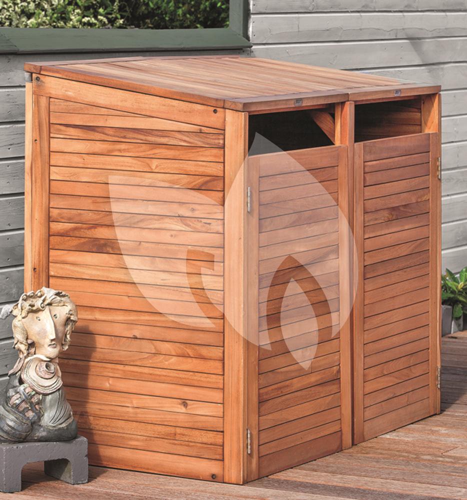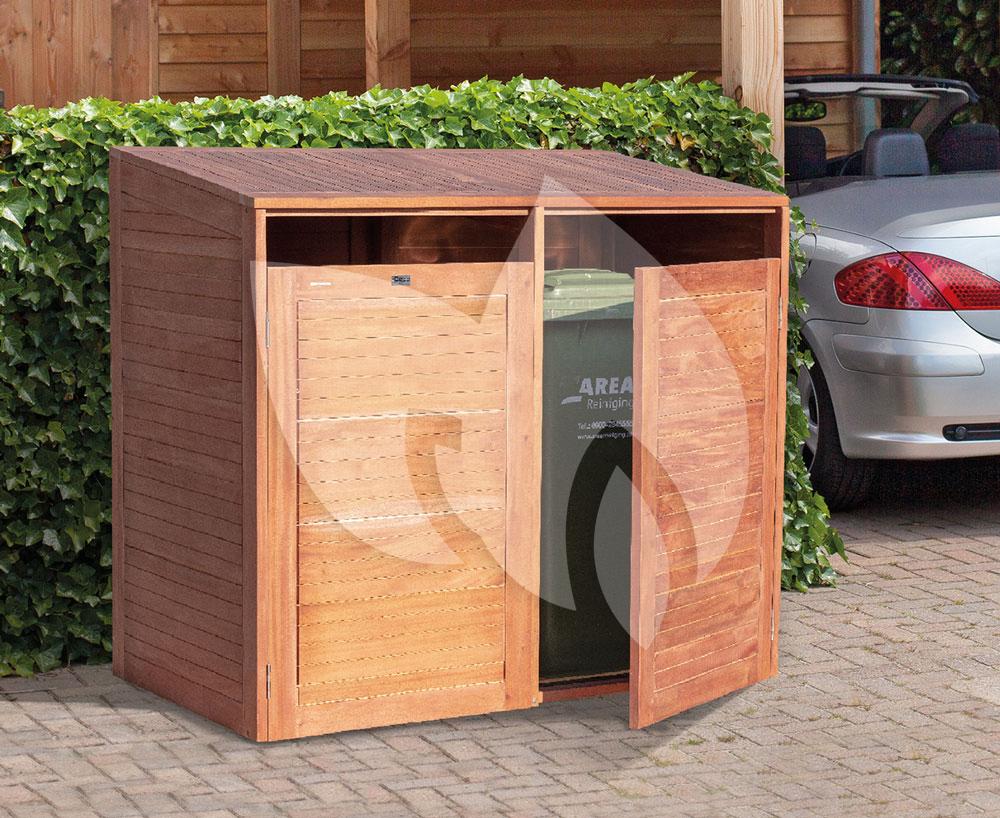 De hardhouten kliko ombouw dubbel is een containerberging geschikt voor 2 vuilcontainers. Het mooie hardhout zorgt ervoor dat jouw kliko’s geen aandacht meer trekken, ze zullen onopvallend weg staan. De ombouw gaat aan de bovenzijde open middels een gasveer, zodat je het afval gemakkelijk in de container kunt doen. Via de deuren aan de voorzijde rij je de kliko’s er zo in of uit.