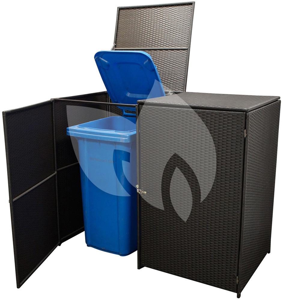 De wicker kliko ombouw dubbel klein is een ombouw geschikt voor 2 vuilcontainers tot 120 liter. Het frame is in basis van staal, welke gevlochten is met donker wicker. Het wicker zorgt dat deze ombouw verzorgt en onopvallend in uiterlijk is. De ombouw gaat aan de bovenzijde open zodat je het afval erin kan gooien en aan de voorzijde kun je de kliko in of uit de ombouw rijden. De deuren zijn afsluitbaar.