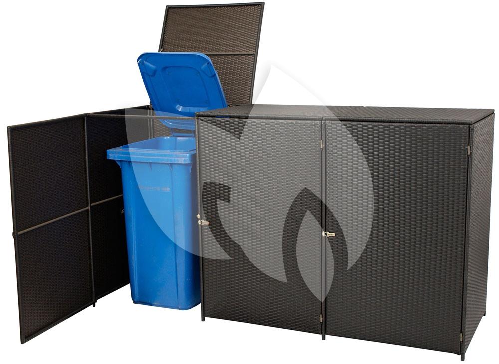 De wicker kliko ombouw triple klein is een ombouw geschikt voor 3 vuilcontainers tot 120 liter. Het frame is in basis van staal, welke gevlochten is met donker wicker. Het wicker zorgt dat deze ombouw verzorgt en onopvallend in uiterlijk is. De ombouw gaat aan de bovenzijde open zodat je het afval erin kan gooien en aan de voorzijde kun je de kliko in of uit de ombouw rijden. De deuren zijn afsluitbaar.