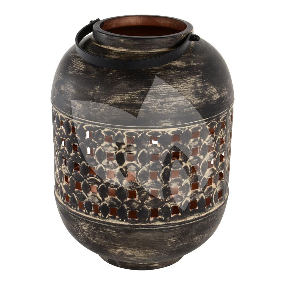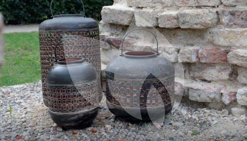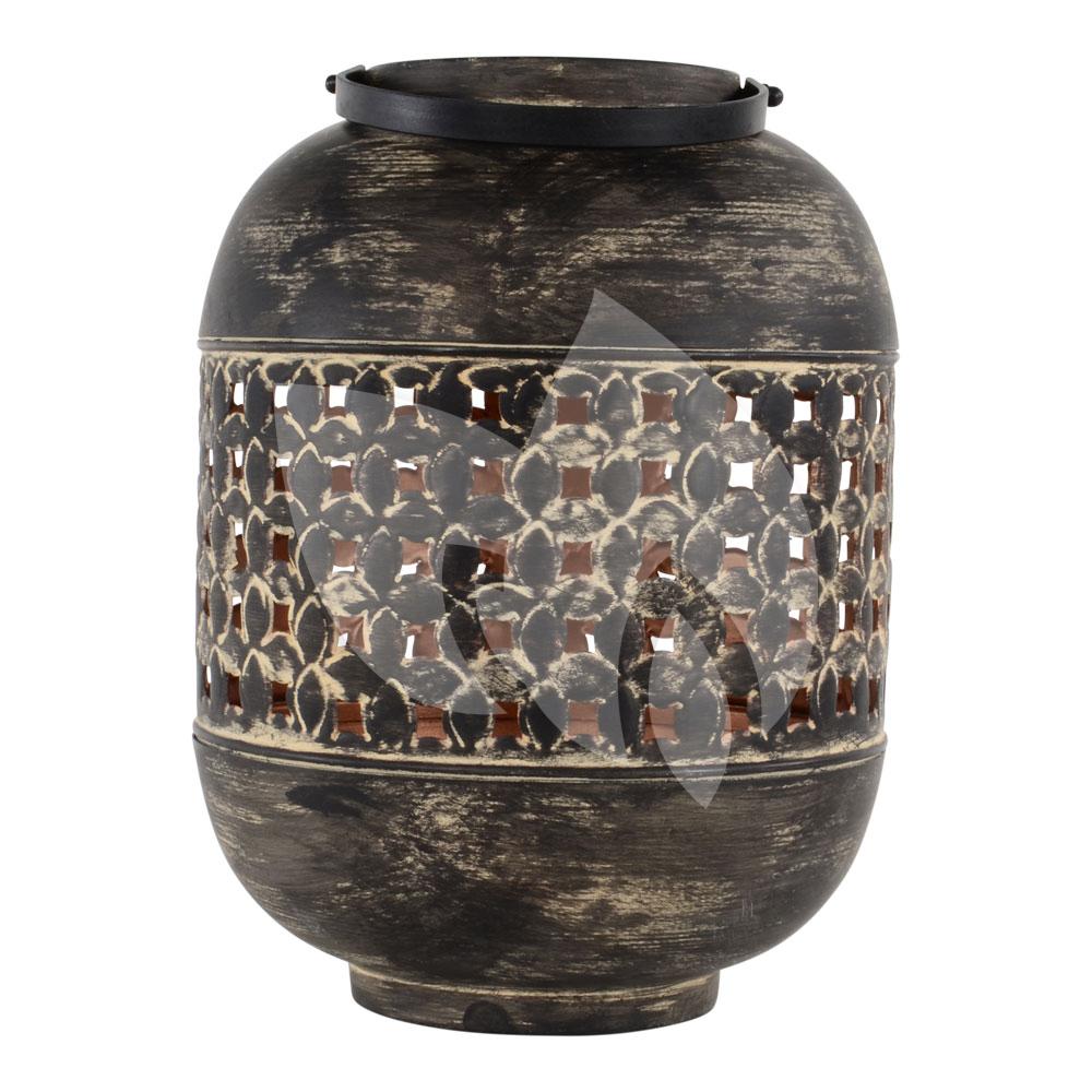 Deze mooie zwarte lantaarn heeft in de rondte een ...
