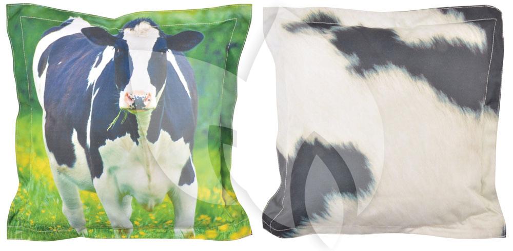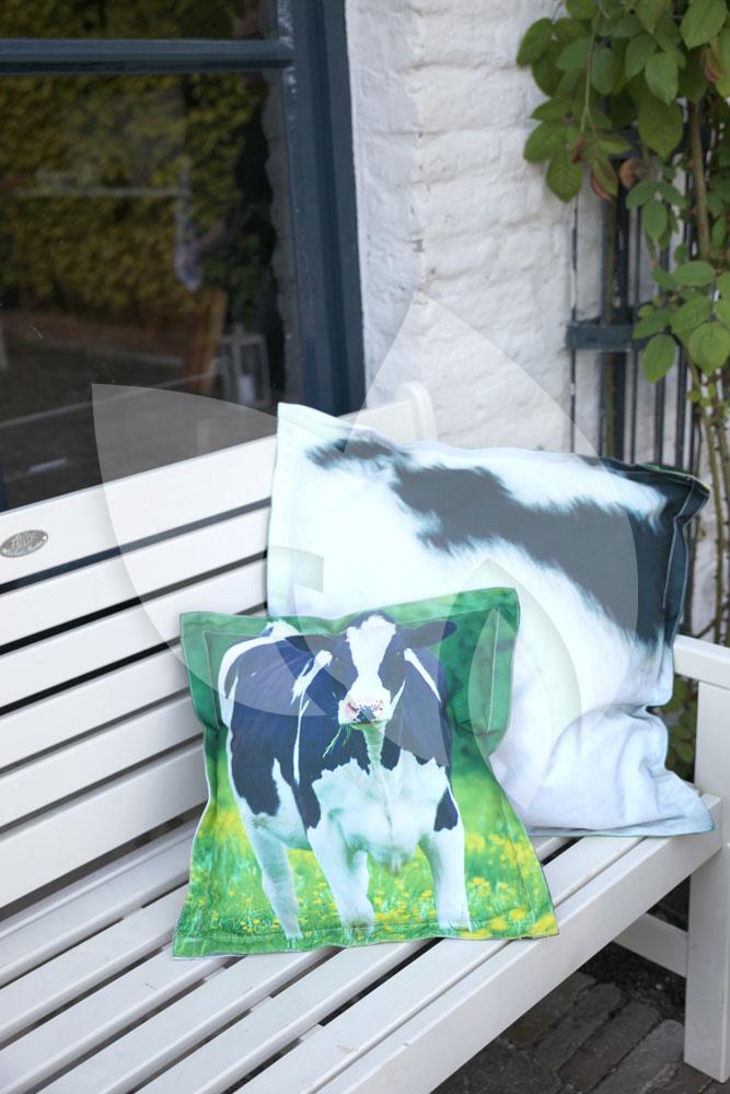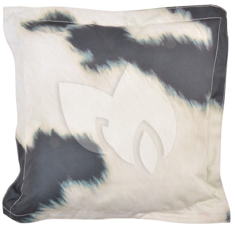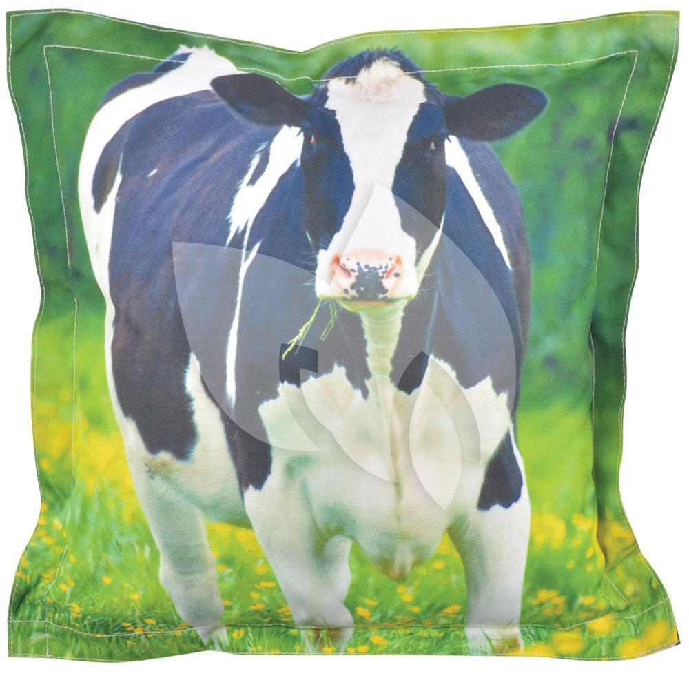 Maak uw tuinbankje helemaal af met een tuinkussen met koeienprint. De voorzijde van het kussen heeft een afbeelding van een koe en de achterzijde heeft een afbeelding van koeienvacht. Met dit tuinkussen kunt u dus constant van uitstraling wisselen. De PP vulling in het tuinbank kussen maakt het kussen extra comfortabel. Het tuinbank kussen is weerbestendig en is dus ideaal voor op uw tuinbankje.