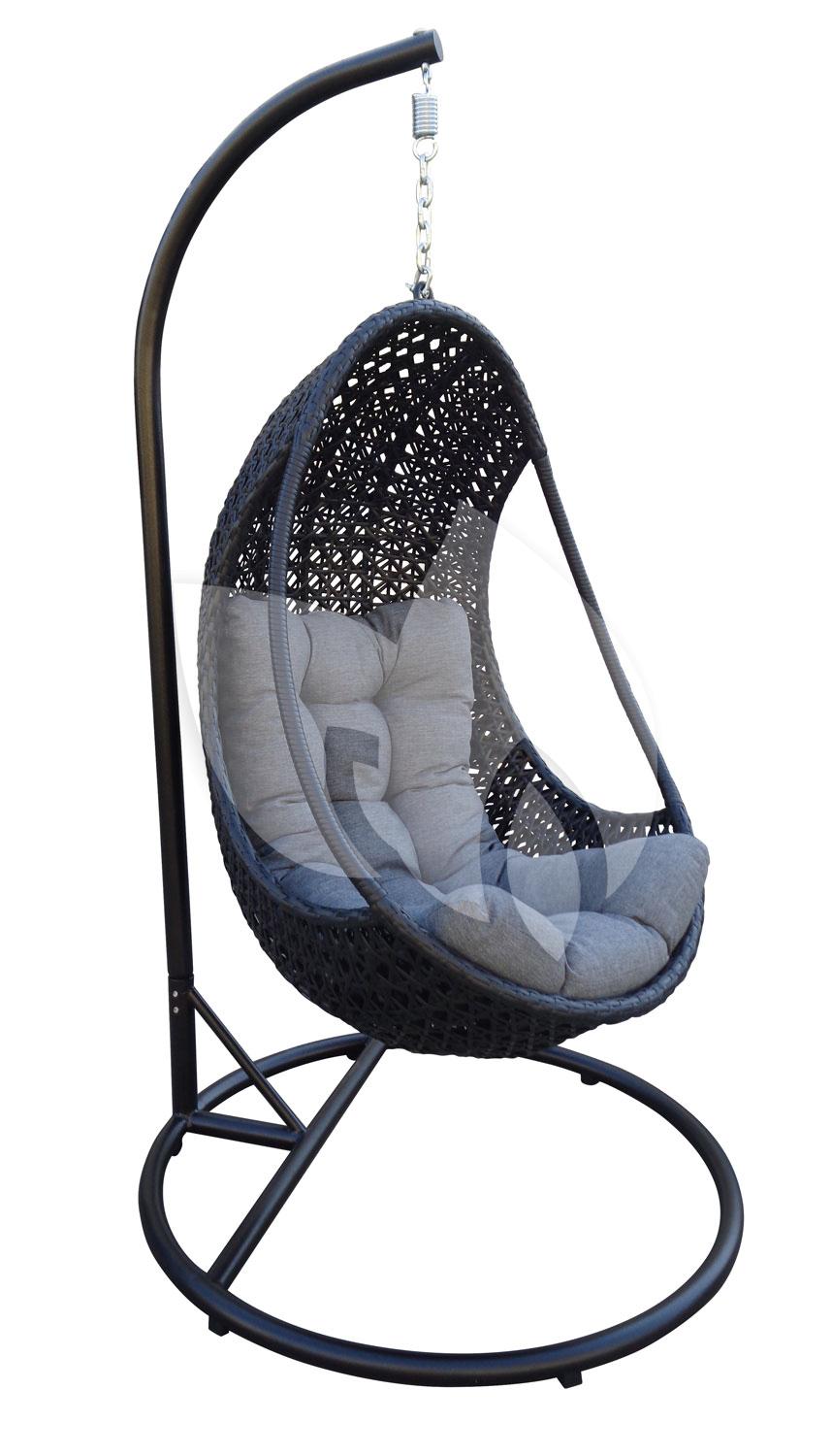 De aluminium stoel is voorzien van een zwart wicker vlechtwerk en hangt u eenvoudig op in bijbehorend metalen frame. Het frame is afgewerkt met een poedercoating wat ervoor zorgt dat de stoel zowel binnen- als buitenshuis gebruikt kan worden. Het kussen dient u na gebruik wel altijd binnen op te bergen om vochtschade te voorkomen.