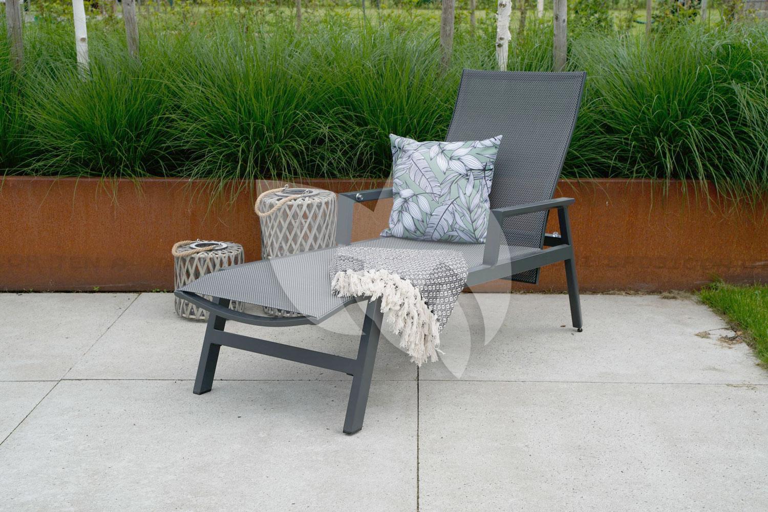 Lichtgewicht aluminium antraciet zonnebed met hoge zit